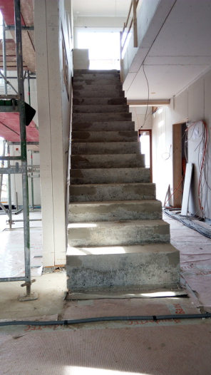Jetzt steht dem Estrichleger nichts mehr im Wege. Für ihn und alle anderen Folgegewerke ist diese Treppe nun ein Segen. Das klettern über eine Leiter hat ein Ende.